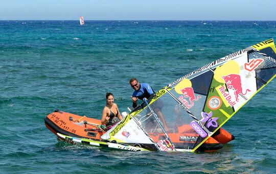 Todo lo necesario: tabla, vela, neopreno, arnés, chaleco, prácticas previas en el simulador, acompañamiento por parte del instructor durante toda la sesión desde el barco. También incluye seguro para el material.
